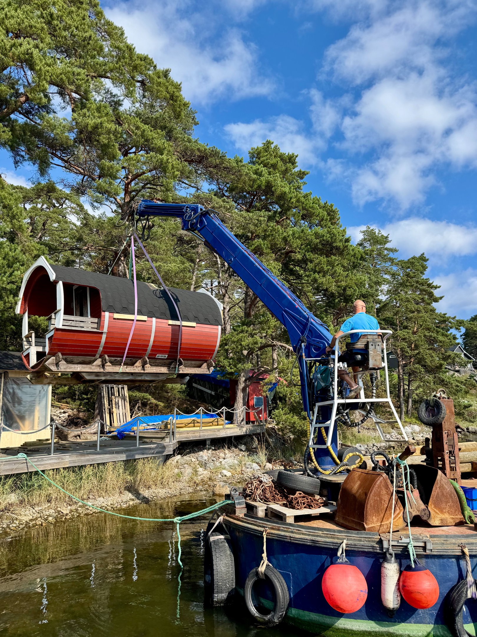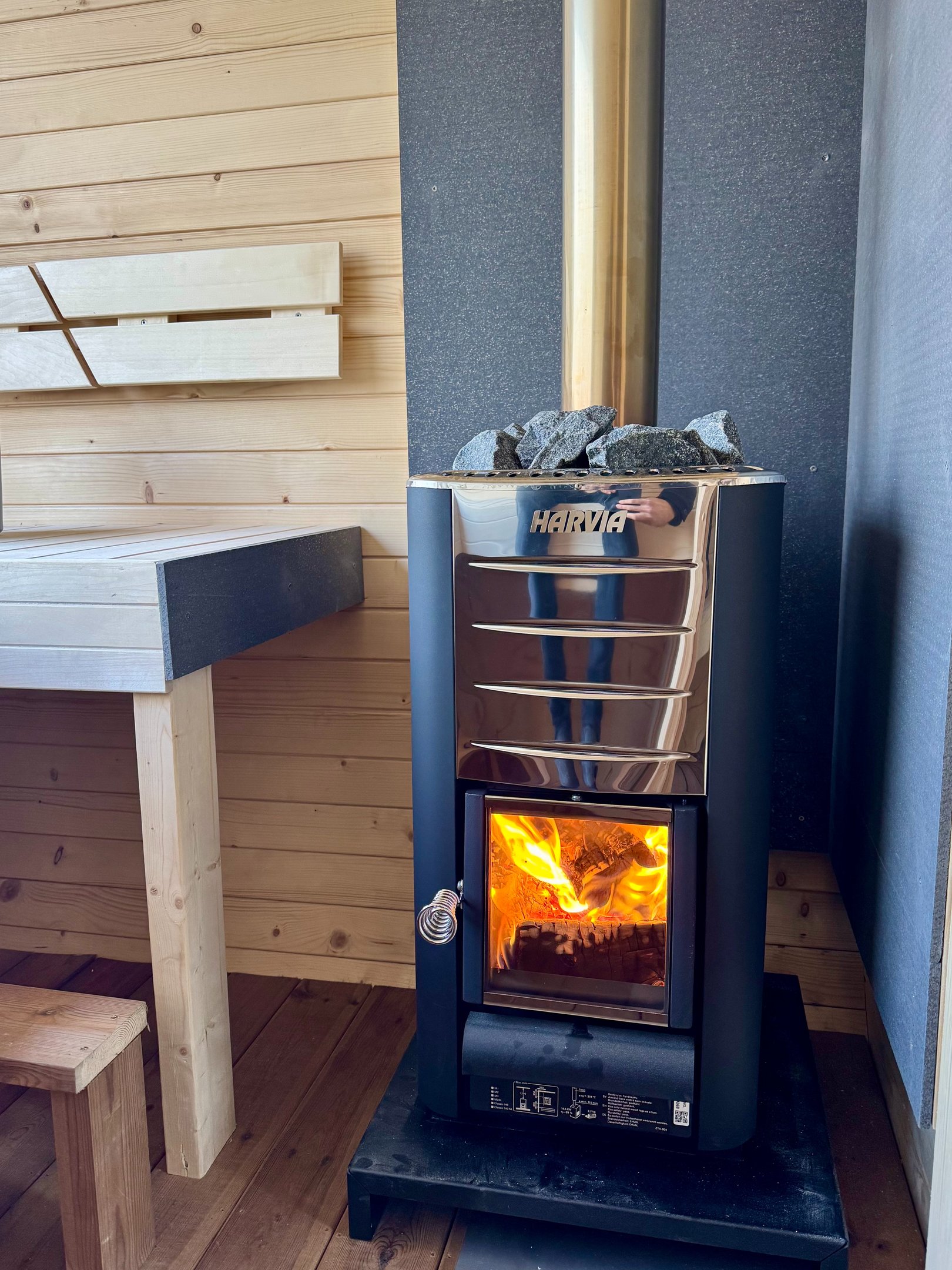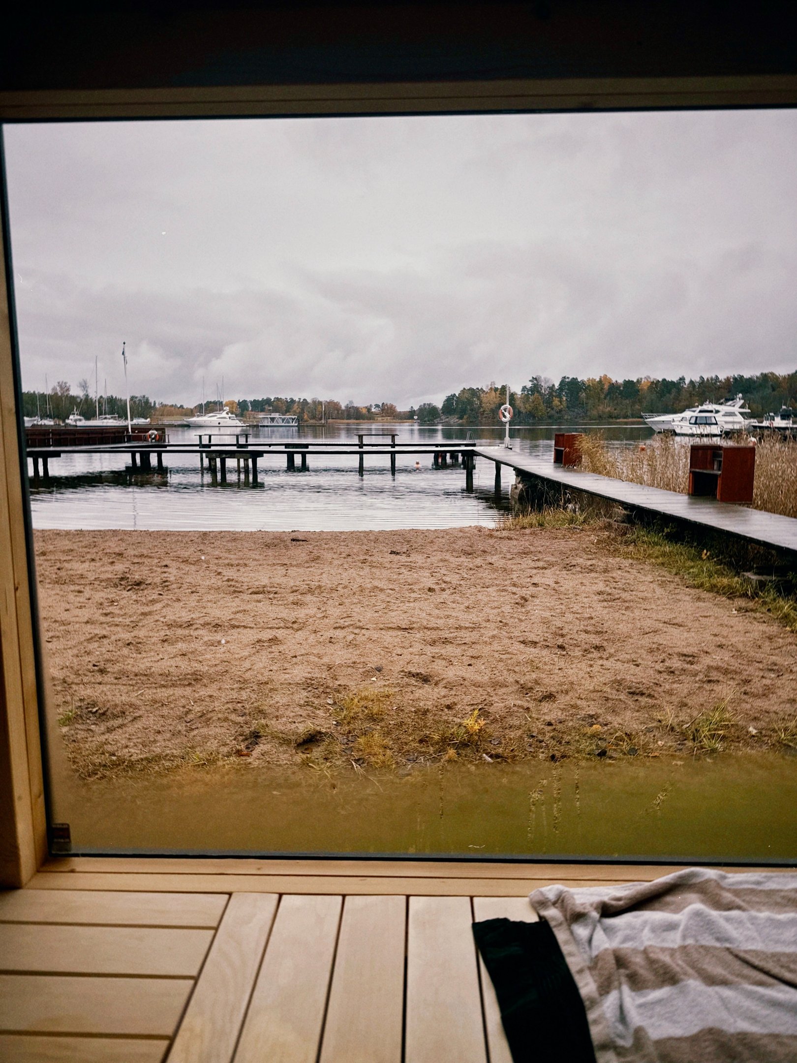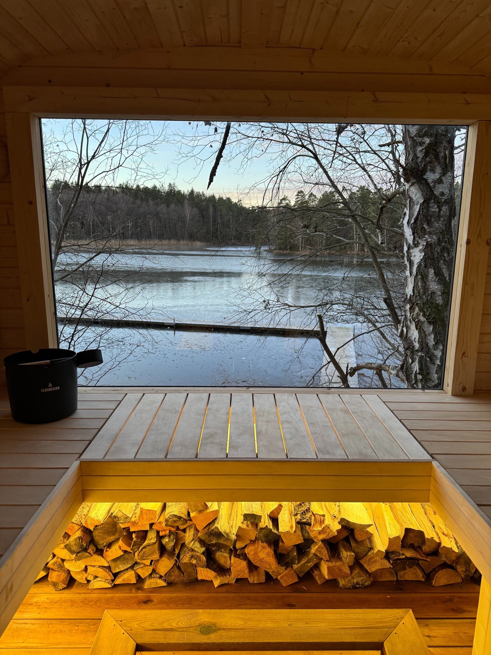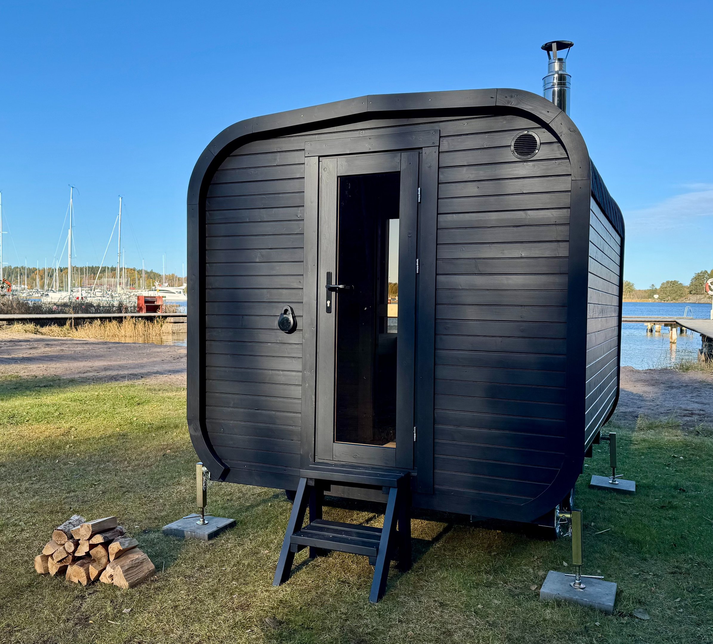 På plats finns allt redo för en spontan och lugn bastustund med utsikt över vattnet.