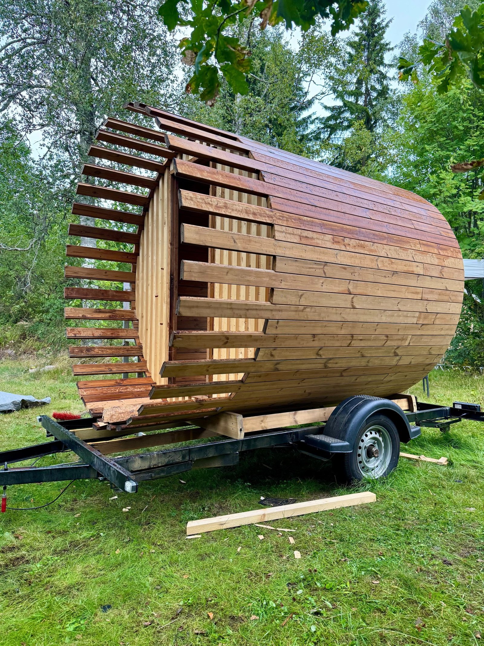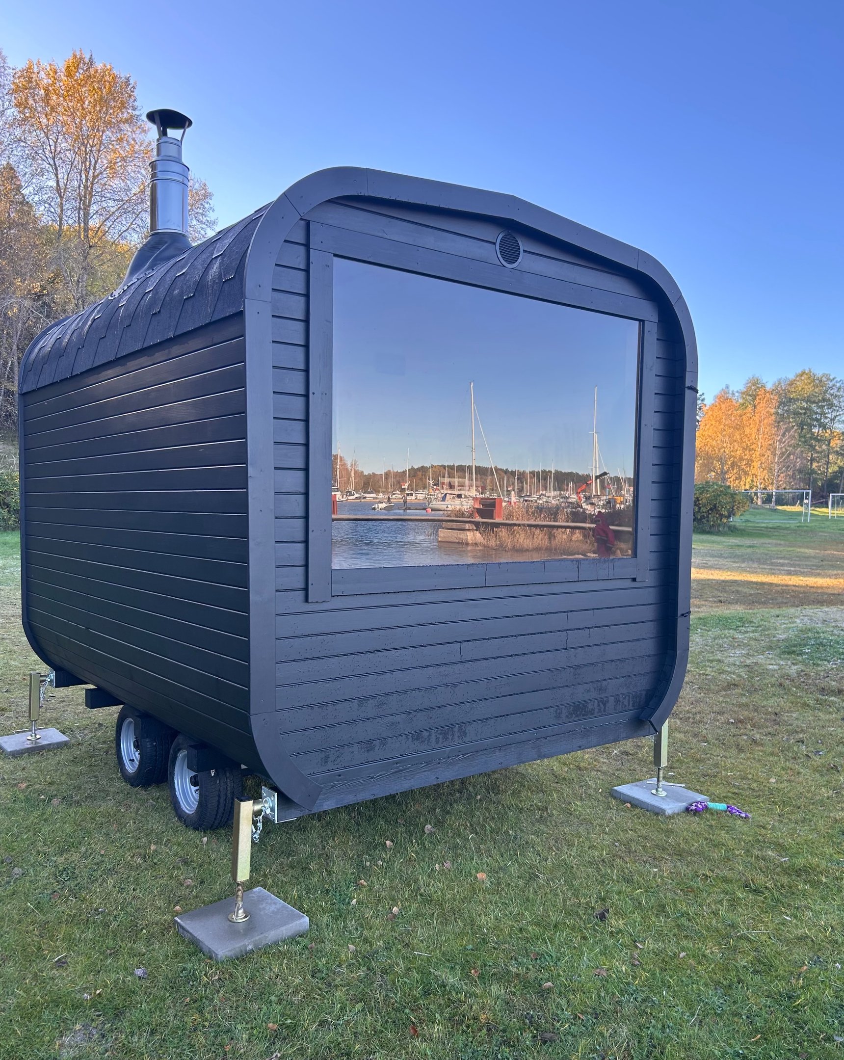 Vi bygger en vedeldad och flyttbar bastu, kör den själv eller låt oss leverera till dig eller ditt företag.